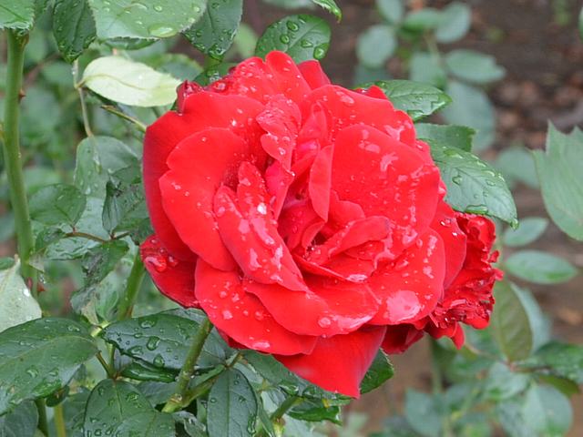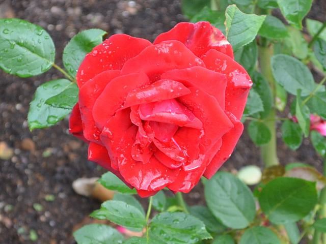ヘルツアス 秋の花 2013年11月22日 ヘルツアス(Herz Ass)はバラ科バラ属の落葉低木である。品種名はドイツ語で、トランプの「ハートのエース」を意味する。ハイブリッドティ系(Hybrid Tea:HT)と呼ばれるものの1つで、四季咲きの大輪である。1998年にドイツのタンタウ(Mathias Ⅱ Tantau)によって作出された。樹高は80~120センチくらいである。樹形は半直立性である。開花時期は5~11月である。花径13センチくらいの半剣弁高芯咲きの半八重である。花の色は赤である。花弁数は30~35枚くらいである。花には微香がある。写真は10月に北大植物園で撮った。学名:Rosa 'Herz Ass'★なかなかにお洒落な名だねヘルツアス 真っ赤な薔薇に似合っているよ花図鑑植物図鑑|味の麺匠戸田久|おこめの鬼平|フロム蔵王|花の本屋さん|楽天トラベル|