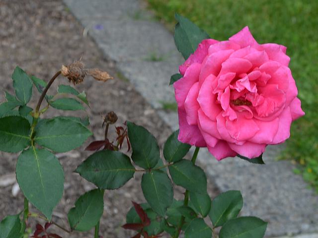 ペーター・フランケンフェルト 秋の花 2013年11月12日 ペーター・フランケンフェルト(Peter Frankenfeld)はバラ科バラ属の落葉低木である。品種名は、実在したドイツのコメディアンの名からきている。ハイブリッドティ系(Hybrid Tea:HT)と呼ばれるものの1つで、四季咲きの大輪である。1966年にドイツのコルデス(Kordes)によって作出された。樹高は120~150センチくらいである。樹形は直立性である。開花時期は5~11月である。花径13センチくらいの半剣弁高芯咲きの半八重で、花の色は濃いピンクである。花弁数は40枚くらいである。花には微香がある。写真は10月に北大植物園で撮った。学名:Rosa 'Peter Frankenfeld'★鮮やかなダークピンクの花色に ほうとため息北国の秋花図鑑植物図鑑|味の麺匠戸田久|おこめの鬼平|フロム蔵王|花の本屋さん|楽天トラベル|PR
