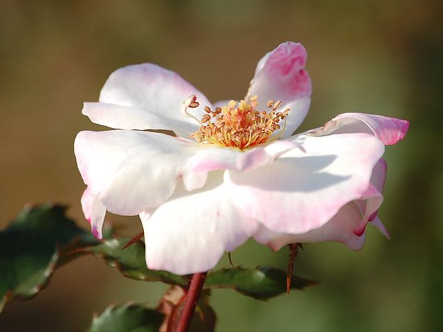 デスティニー 秋の花 2013年11月03日 デスティニー(Destiny)はバラ科バラ属の落葉低木である。品種名は「運命、宿命」を意味するフロリブンダ系(Floribunda:FL)と呼ばれるものの1つで、四季咲きの中輪である。1989年にフランスのメイアン社(Meilland)によって作出された。樹高は80センチくらいである。樹形は半直立性である。開花時期は5~11月である。花径5~7センチくらいの丸弁房咲きの半八重で花の色は白く、花弁の先がピンクの覆輪になる。花弁数は25枚くらいである。写真は10月に神代植物公園で撮った。学名:Rosa 'Destiny'★覆輪の花はとっても可愛いね ピンクのぼかしが乙女を思わせ花図鑑植物図鑑|味の麺匠戸田久|おこめの鬼平|フロム蔵王|花の本屋さん|楽天トラベル|代植物公園