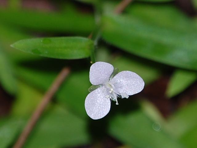 ムルダニア・シンプレクス 夏の花 2013年09月14日 ムルダニア・シンプレクスはツユクサ科イボクサ属の多年草である。中国、東南アジア、インドシナ半島、マレーシア、インドネシア、インド、東アフリカなどに分布し、湿地や草地に生える。中国名は「細竹蒿草(サイチクコウソウ)」である。草丈は20センチから50センチくらいである。葉は幅の狭い披針形(笹の葉のような形)で、互い違いに生える(互生)。開花時期は4月から9月である。花径15ミリくらいの白ないし紫色の3弁花をつける。花は一日花である。花の後にできる実は楕円形のさく果(熟すと果皮が裂開する果実)で、垂れ下がる。清熱、止咳、解毒、利尿などの薬効があり、中国では薬草とされる。属名の Murdannia はインドの植物収集家「ムルダン(Munshi Murdan Ali, 1800's)さん」の名からきている。種小名の simplex は「単生の」という意味である。写真は9月につくば植物園で撮った。学名:Murdannia simplex ★するすると茎を這わせて蔓延るを 想像させる疣草の仲間花図鑑植物図鑑|味の麺匠戸田久|おこめの鬼平|フロム蔵王|花の本屋さん|楽天トラベル|