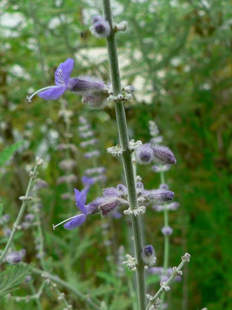 ロシアンセージ 未選択 2013年08月28日 ロシアンセージ(Russian sage)はシソ科ペロフスキア属の落葉小低木である。原産地はパキスタン、アフガニスタン、イラン、コーカサス地方などである。草丈は60~130センチくらいである。枝や葉は灰白色を帯びている。葉は羽状に深く切れ込み、向かい合って生える(対生)。開花時期は7~10月である。茎先に穂状の総状花序(柄のある花が花茎に均等につく)を出し、青紫色をした唇形の花をつける。花の後にできる実は分果(複数の子房からできた果実)で、4つのブロックかになる。サルビア類とは属が異なるが、一般名としてセージの名が用いられる。ミントに似た香りがあり、ポプリに利用される。属名の Perovskia はロシアの将軍で政治家の「ペロフスキ(V. A. Perovski, 1794-1857)」の名からきている。種小名の atriplicifolia は「ハマアカザ属(Atriplex)のような葉の」という意味である。写真は8月につくば植物園で撮った。学名:Perovskia atriplicifolia★涼しげに灰白色を帯びて咲く ロシアンセージ夏を乗り越え花図鑑植物図鑑|味の麺匠戸田久|おこめの鬼平|フロム蔵王|花の本屋さん|楽天トラベル|