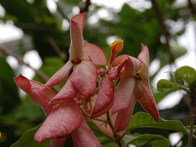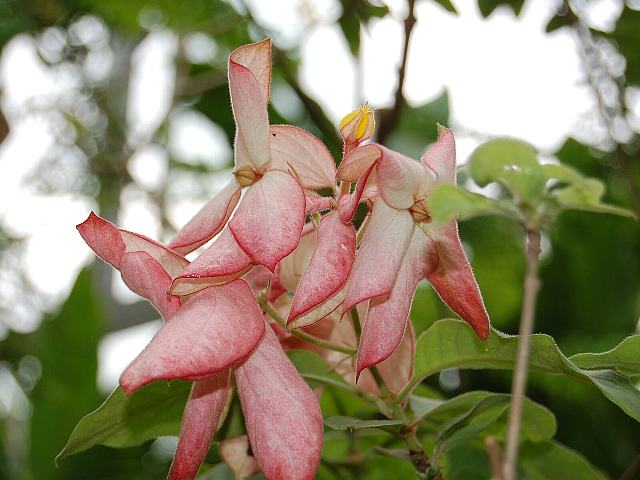 ムッサエンダ・クイーンシルキット 四季咲きの花 2013年08月18日 ムッサエンダ・フィリピカはアカネ科コンロンカ属の常緑小低木である。原産地はフィリピンやニューギニアである。クイーンシルキット(Queen Sirkit)はその園芸品種である。樹高は1~3メートルくらいである。葉は楕円形で、向かい合って生える(対生)。開花時期は周年である。特徴は花弁状の大きな萼片がピンクになることである。筒状をした小さな黄色い花が咲く。花は開くと星形になる。属名の Mussaenda はスリランカでの現地名からきている。種小名の philippica は「フィリピンの」という意味である。品種名の Queen Sirkit はタイのシルキット王女の名からきている。写真は6月に神奈川県立フラワーセンター大船植物園で撮った。学名:Mussaenda philippica 'Queen Sirkit'★ふんわとピンクに染まる萼の色 気品に満ちたクイーンシルキット花図鑑植物図鑑|味の麺匠戸田久|おこめの鬼平|フロム蔵王|花の本屋さん|楽天トラベル|